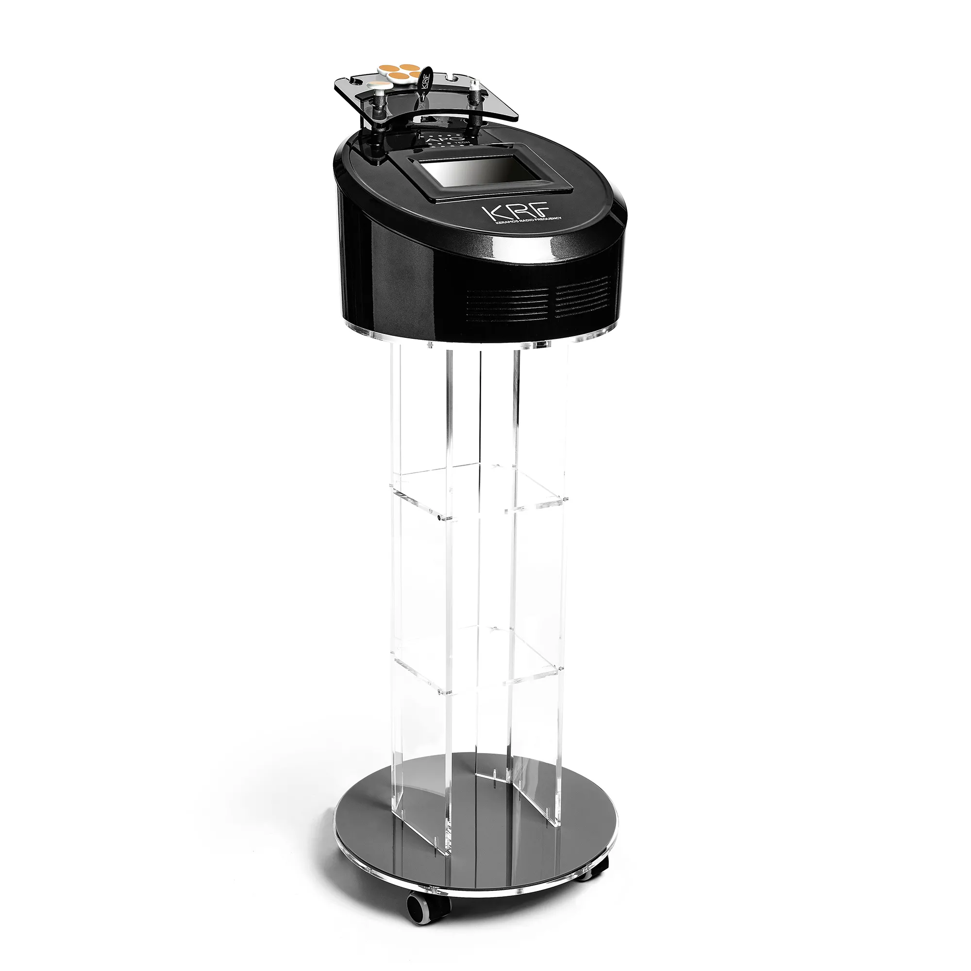 KRF uses a capacitive and fractional radio frequency system with high-performance ceramic transducers to firm and sculpt the face and body, giving a more youthful appearance.